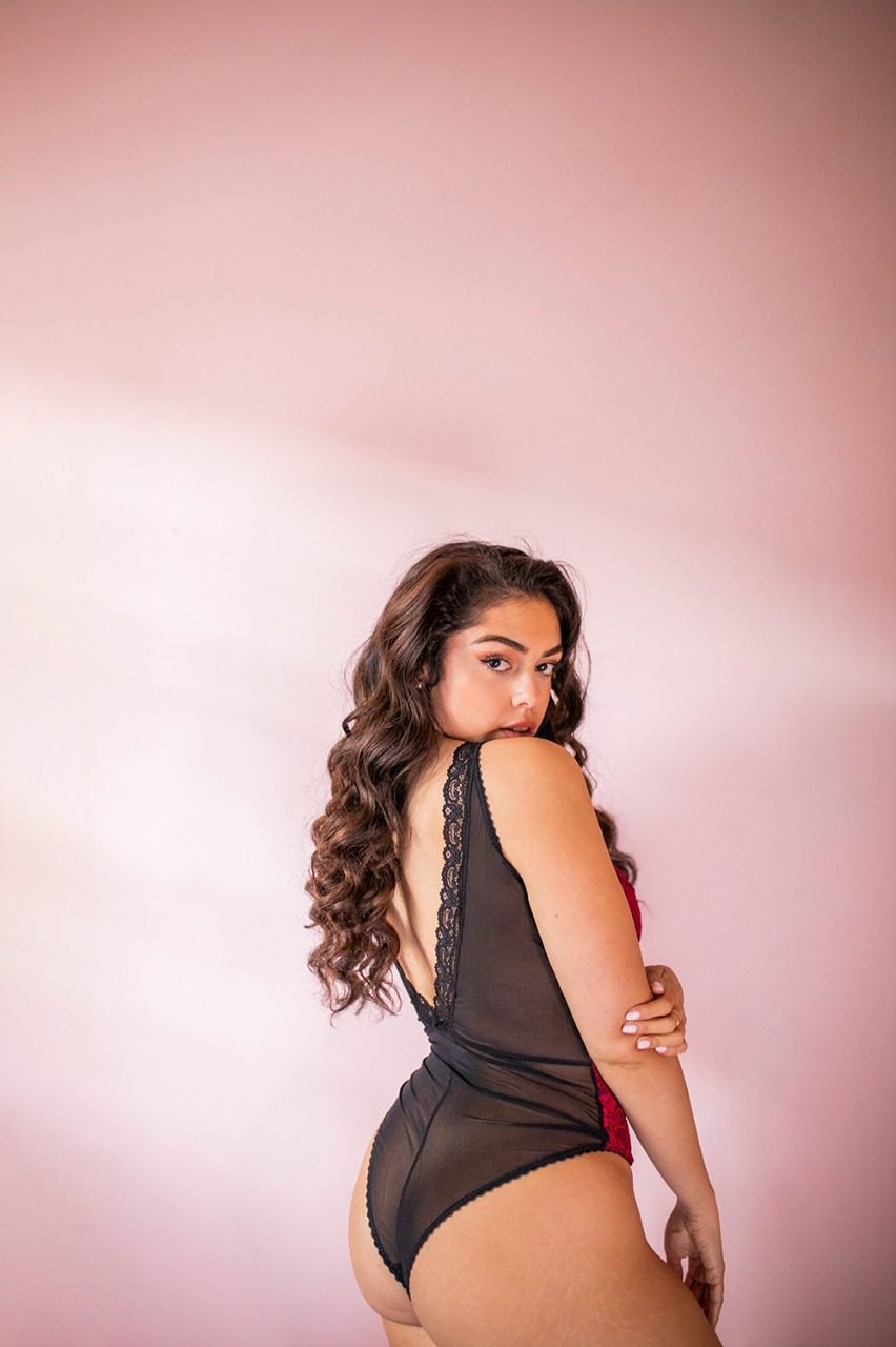 Body confeccionado en puntilla y microtul. Aplique de guipure y espalda abierta que crea un look sensual y sofisticado.