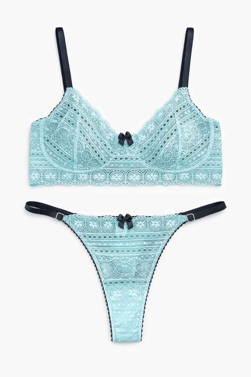 Conjunto de soutien con arco y microbikini realizado en puntilla . Breteles de soutien y microbikini regulables.