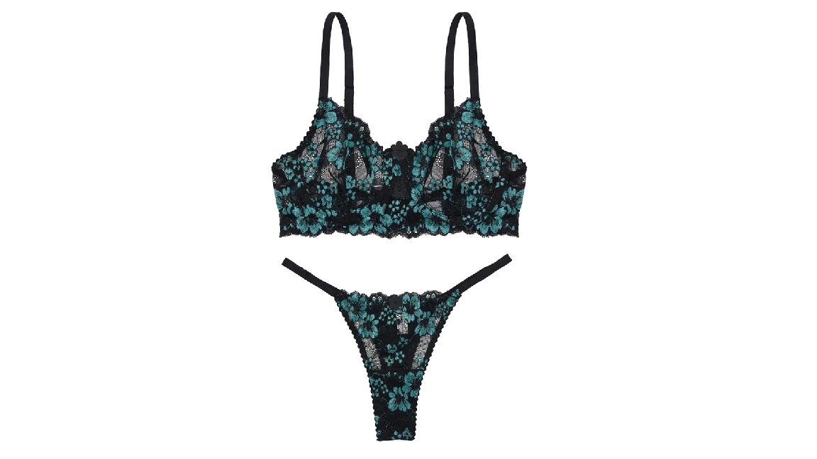Conjunto de soutien con arco y microbikini realizado en puntilla bicolor. Breteles de soutien y microbikini regulables.