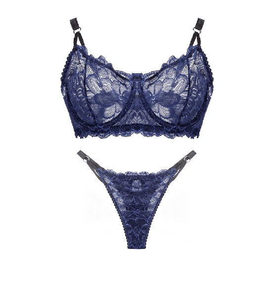 Conjunto de corpiño con arco confeccionado en puntilla. Microbikini regulable confecciona en puntilla.