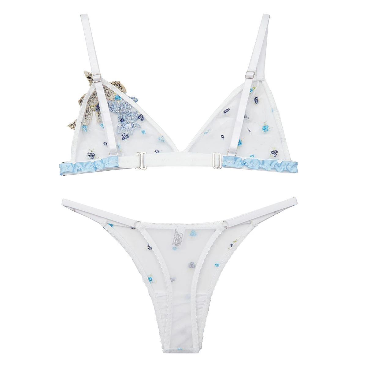 Tanto el corpiño, como la microbikini, cuentan con apliques bordados.