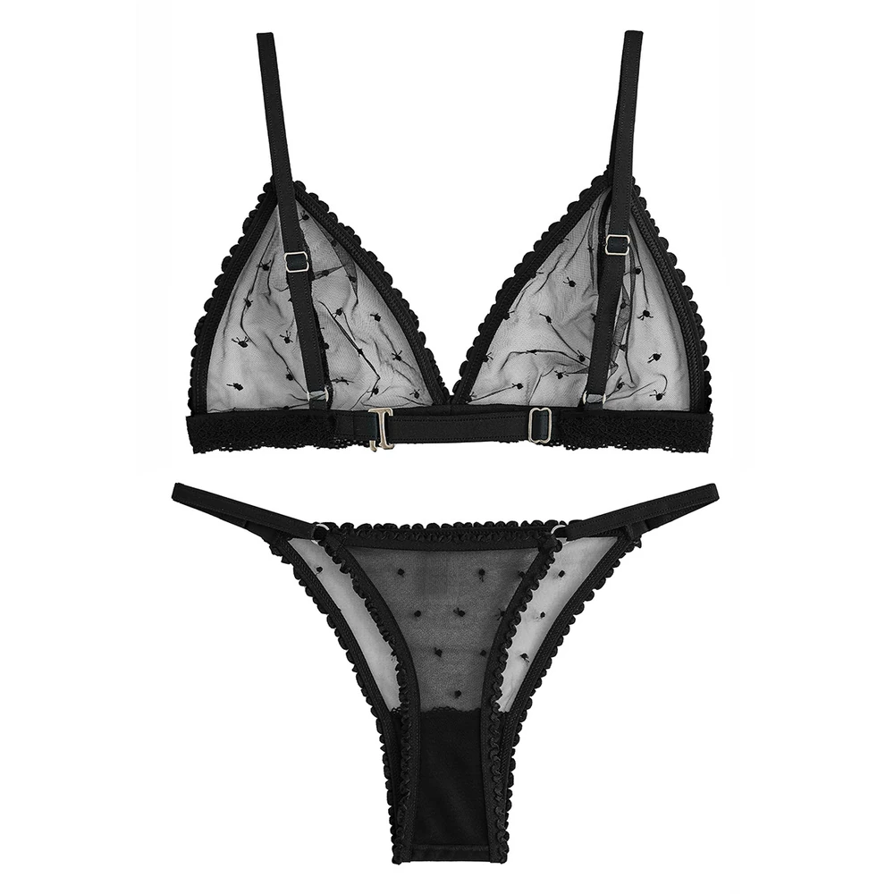 Conjunto de soutien triángulo y microbikini en delicado plumeti, inspirado en el encanto vintage que nunca pasa de moda. Liviano, femenino y con ese aire romántico que realza tu esencia natural.