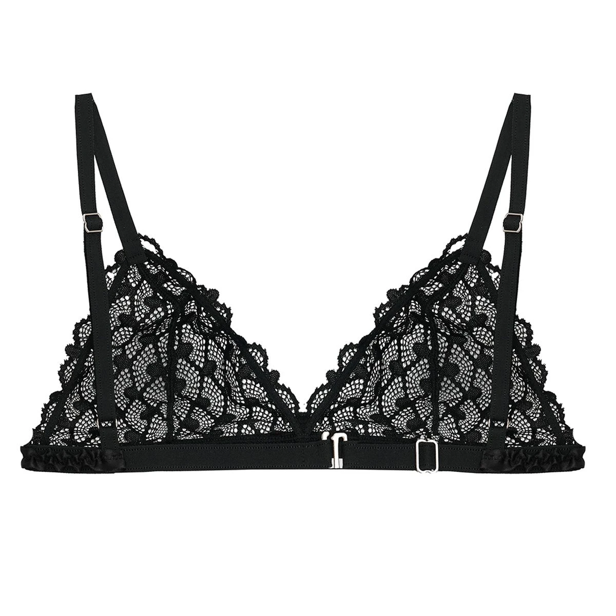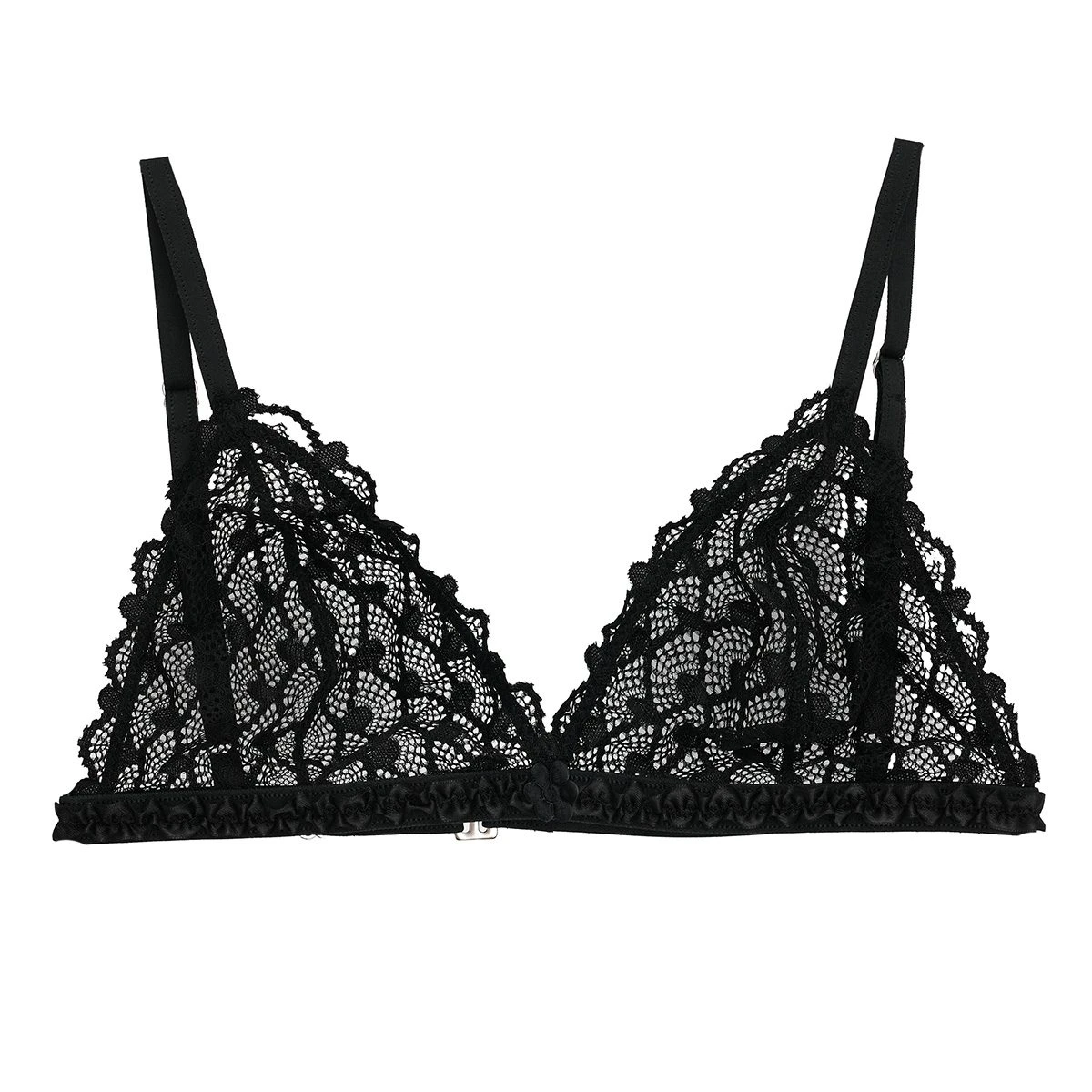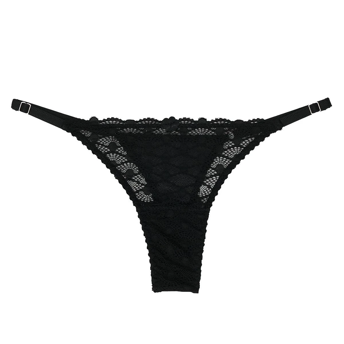 Conjunto de corpiño sin arco de encaje, los breteles son regulables. Microbikini less regulable, confeccionada en encaje.
