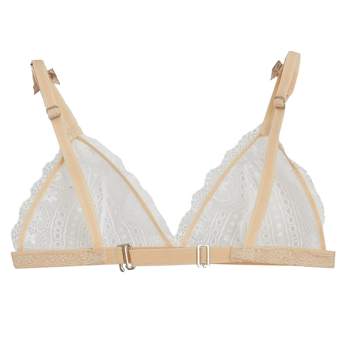 Conjunto de corpiño sin arco de encaje, los breteles son regulables. Microbikini less regulable, confeccionada en encaje.