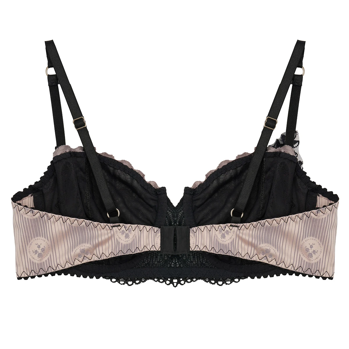 Corpiño con arco confeccionado en exclusivo jackard italiano, realzado con puntilla y bordados delicados. Ideal para quienes buscan elegancia y comodidad en una sola prenda. ”Sentite única y sensual!