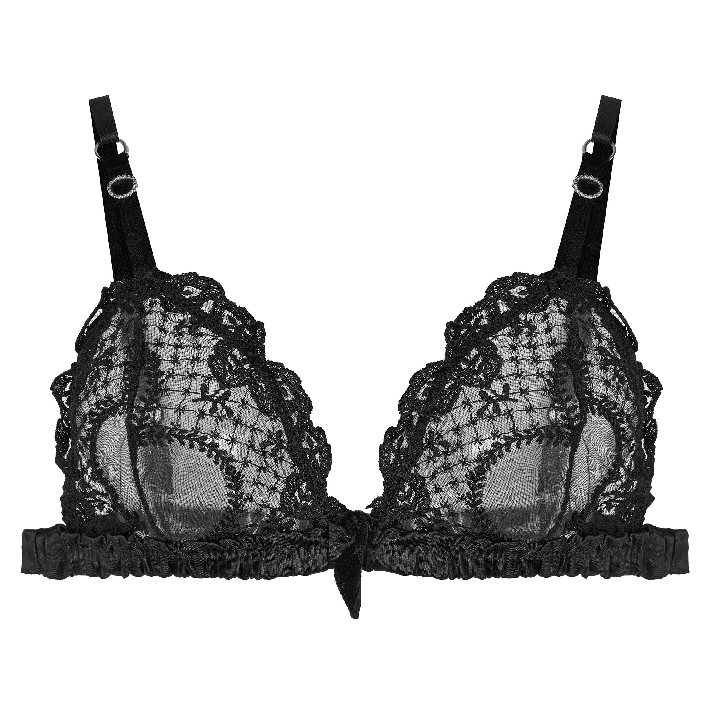 Corpiño sin arco, súper cómodo y liviano, confeccionado en satén suave con detalles en encaje. Ideal para todos los días, con un toque femenino que enamora.