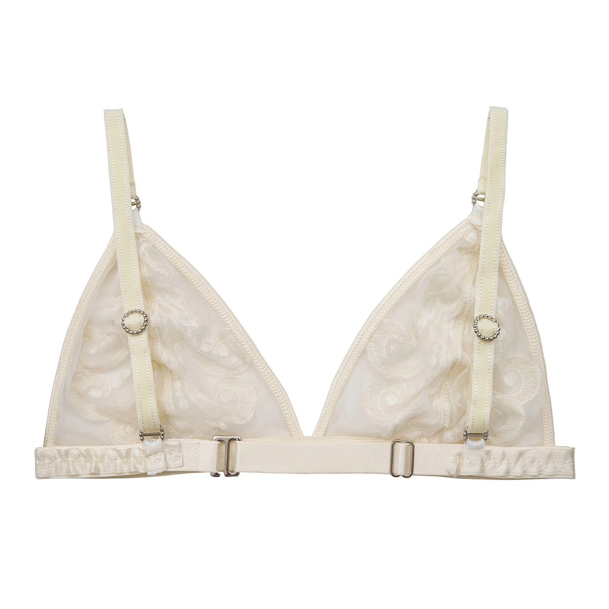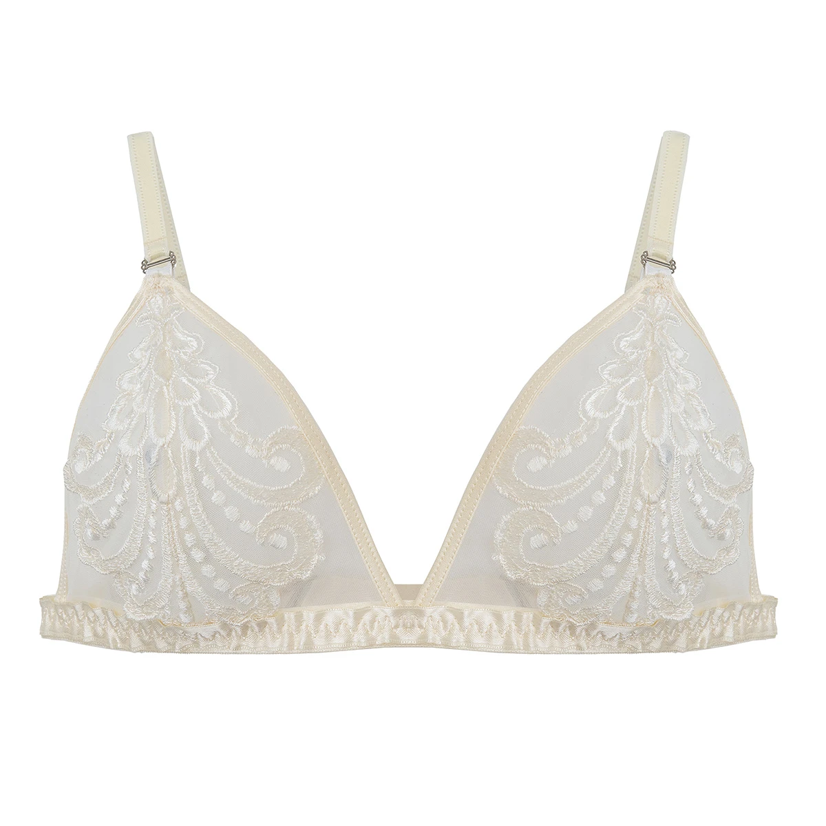 Corpiño sin arco, diseñado para destacar con su aplique bordado y detalles de denier. Tiras regulables para un ajuste personalizado que combina comodidad y estilo en perfecta armonía. ✨