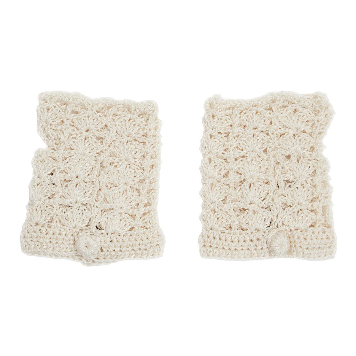 Guantes cortos mitones tejidos al crochet a mano, detalle de mariposa tejida