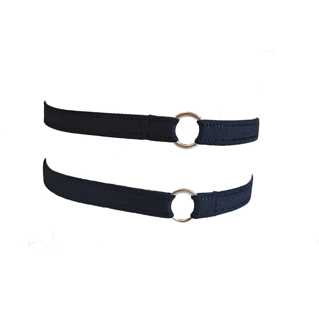 Ligas arnes con bretel finito , confeccionadas con elástico y detalle de arandela.