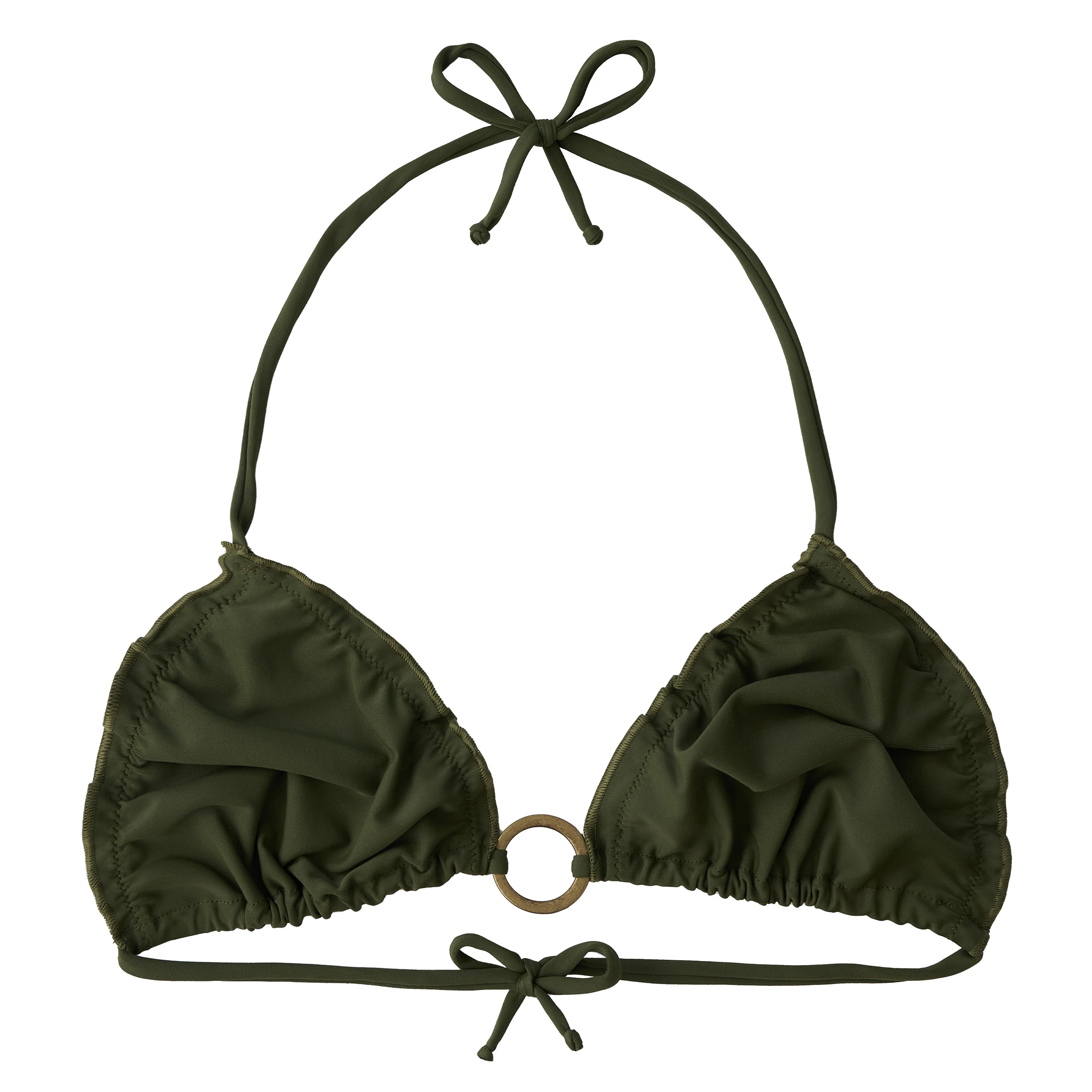 TRIANGULO TRAJE DE BAÑO CON TERMINACIÓN EN RULOTÉ Y DETALLE DE ARGOLLA EN TONO BRONCE